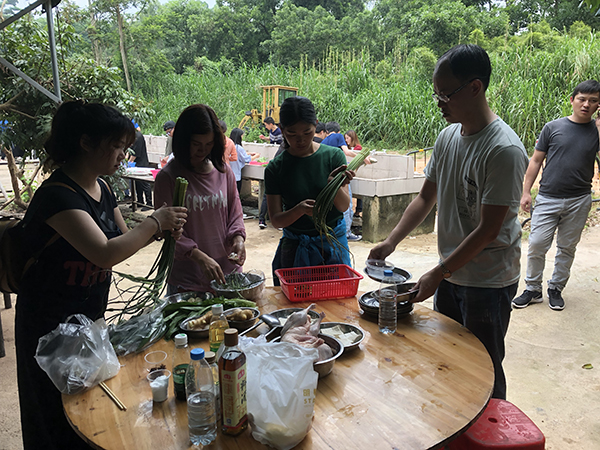 【導(dǎo)語】時(shí)間過得好快,一晃時(shí)間已經(jīng)來到了8月,走進(jìn)8月,你會(huì)看到8月的色彩如同陽光照耀著生命的幸福,在田野上滾動(dòng),拂動(dòng)著嫩綠的禾苗,在天地間升騰,映照著潔白的云朵,疊映在忙碌的身影里,撫摩著耕耘的喜悅。一分耕耘一分收獲,閃耀背后是辛苦的付出,只有努力才有更好未來。團(tuán)結(jié)一心,其利斷金;眾志成城,飛越顛峰。生命是如此可愛,它帶給人類多少快樂。自然是如此清新美麗,它使我們的世界充滿詩情畫意。幸福生活不僅在于豐衣足食,也在于碧水藍(lán)天。為了豐富員工業(yè)余生活,在緊張繁忙的工作之余享受集體活動(dòng)的樂趣,8月3日,深圳市華聯(lián)歐國際貿(mào)易有限公司組織全體員工至深圳觀瀾九龍生態(tài)農(nóng)業(yè)園舉行團(tuán)建游戲過野炊做飯活動(dòng)。