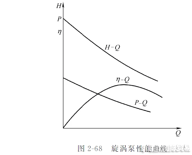 而當(dāng)流量越小,則液體在葉輪內(nèi)的圓周速度和在環(huán)形流道內(nèi)的圓周速度相差越大,離心力相差也越大,縱向旋渦也隨之變大,壓頭也越高。圖2-68和圖2-69為旋渦泵性能曲線及其實例。由兩圖可見,流量減小時,壓頭就增加。