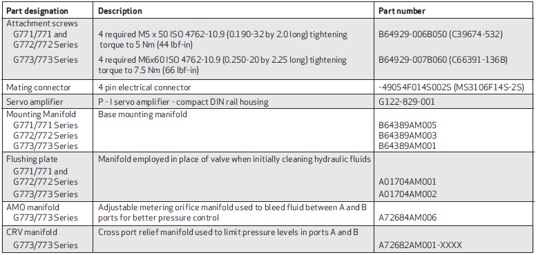 MOOG流量控制閥部分產(chǎn)品型號: