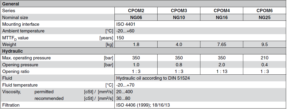 PARKER止回閥CPOM系列產(chǎn)品參數(shù):