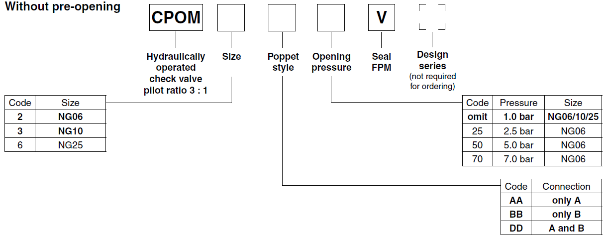 PARKER止回閥CPOM系列產(chǎn)品選型: